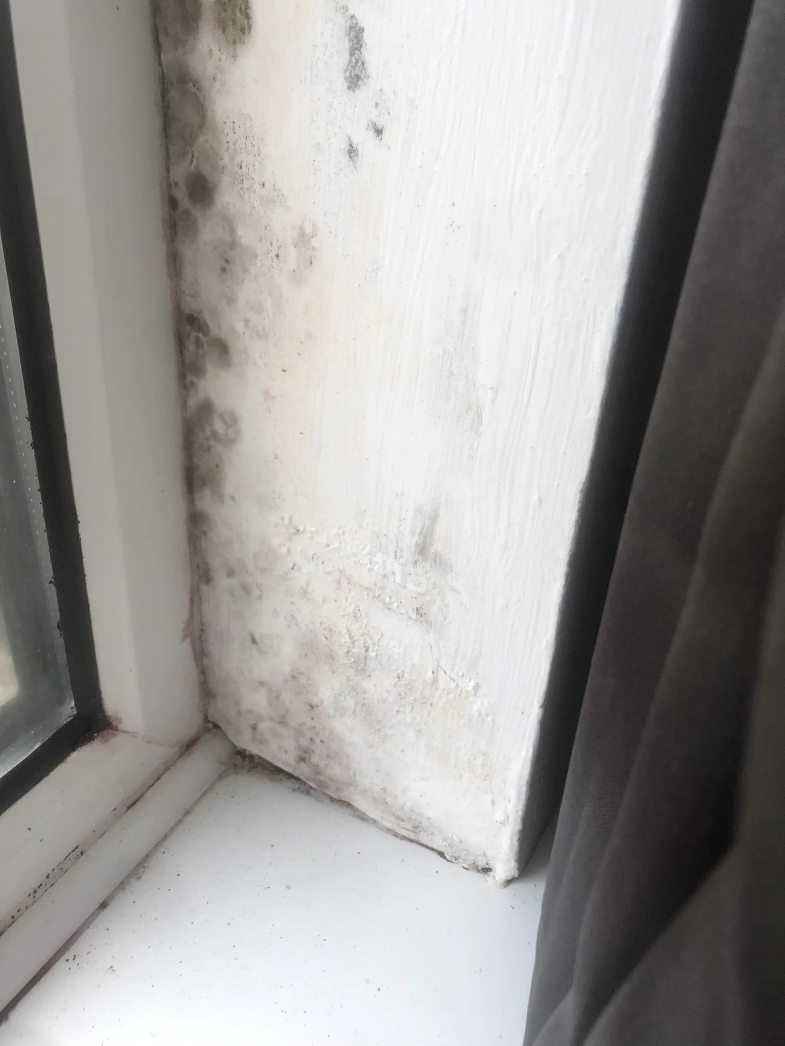 Failed mastic sealant around window frames resulting in dampness & mould growth to some internal reveals