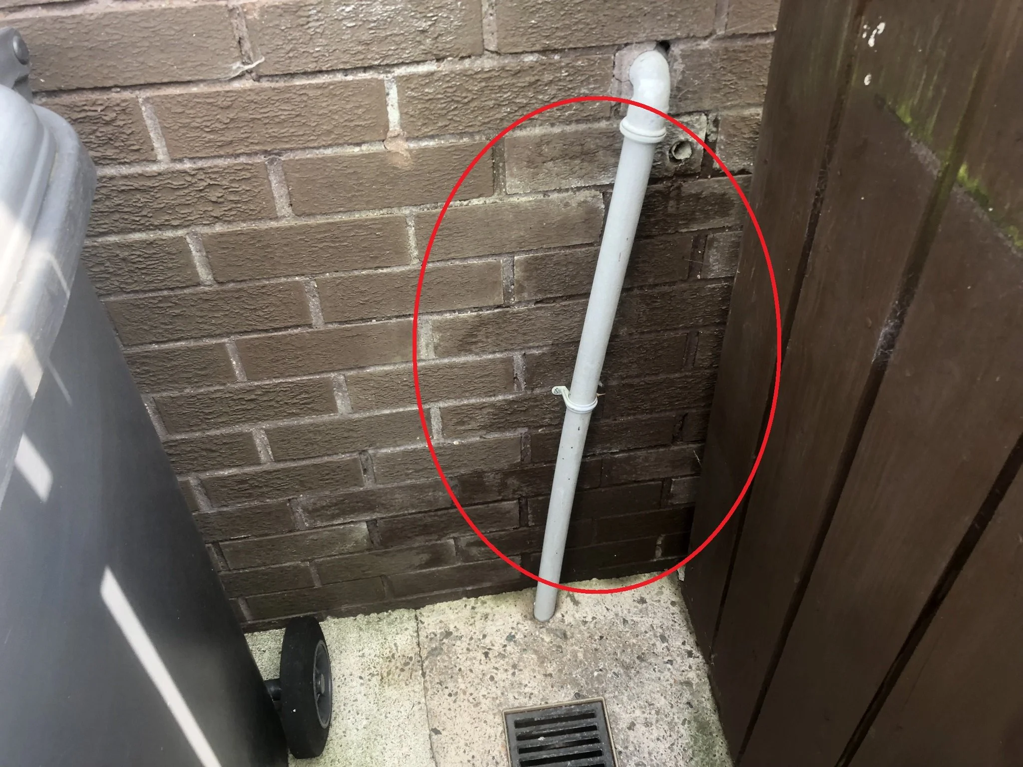 Overflow pipe saturating external wall resulting in localised penetrating dampness internally