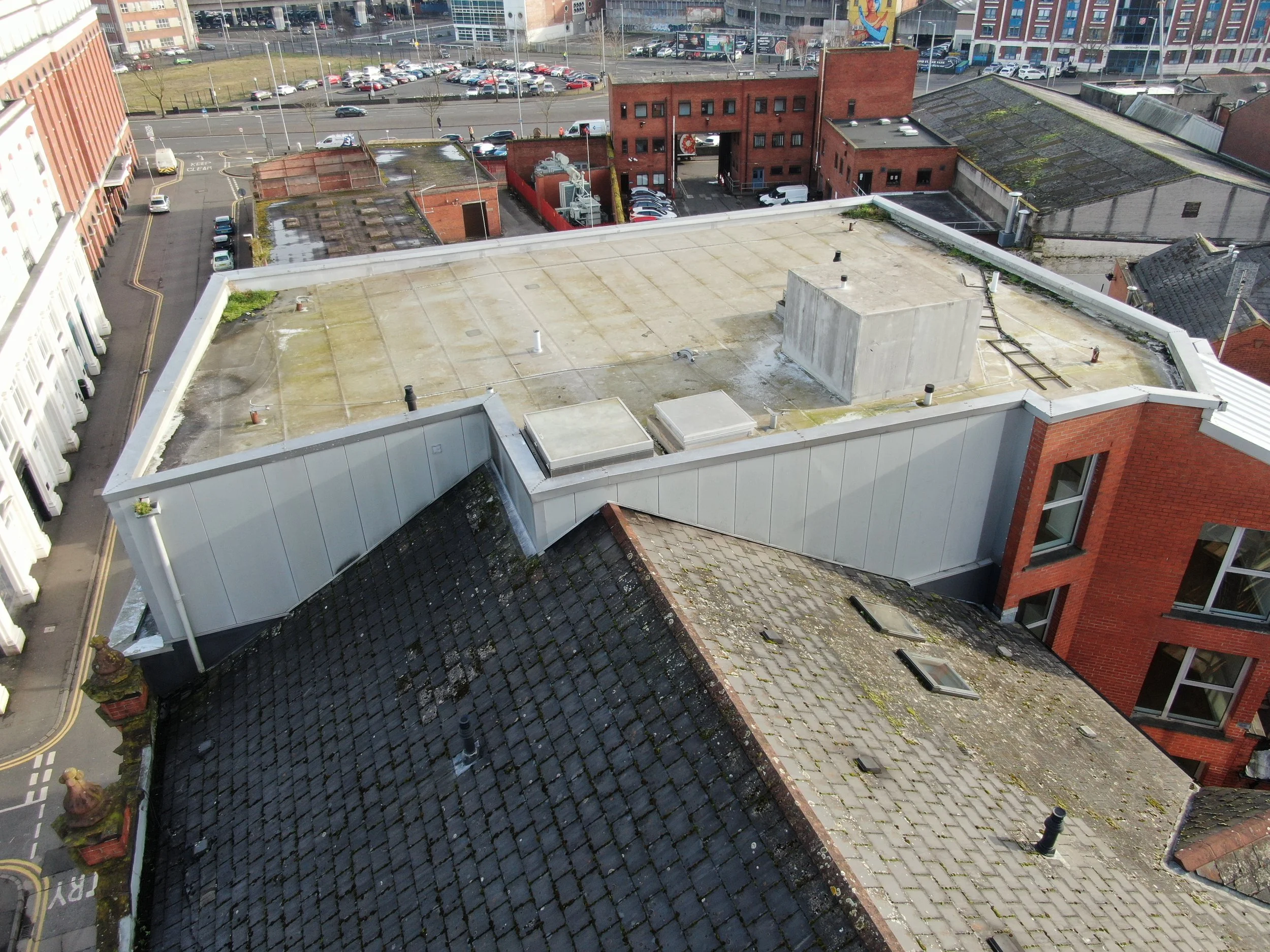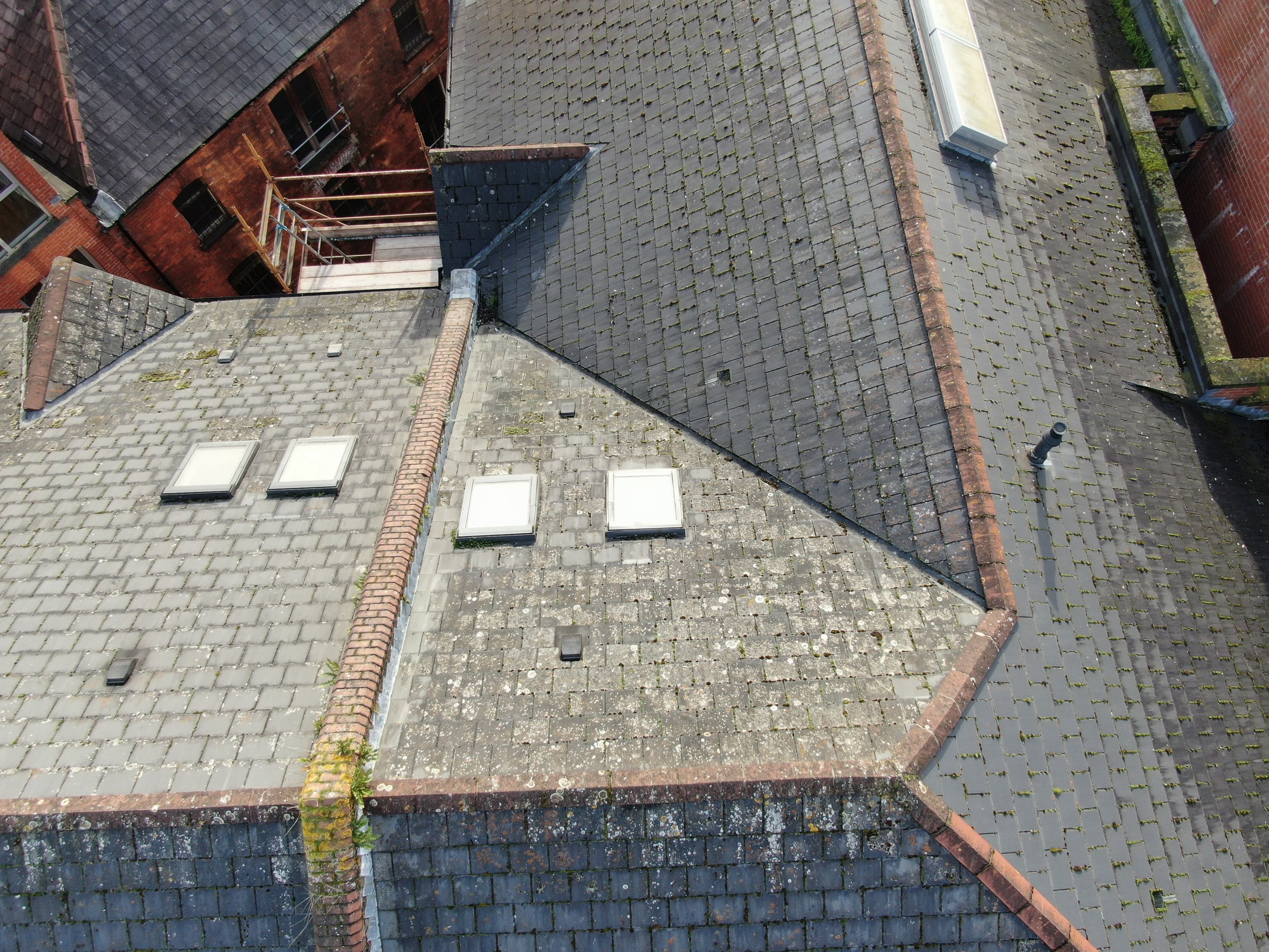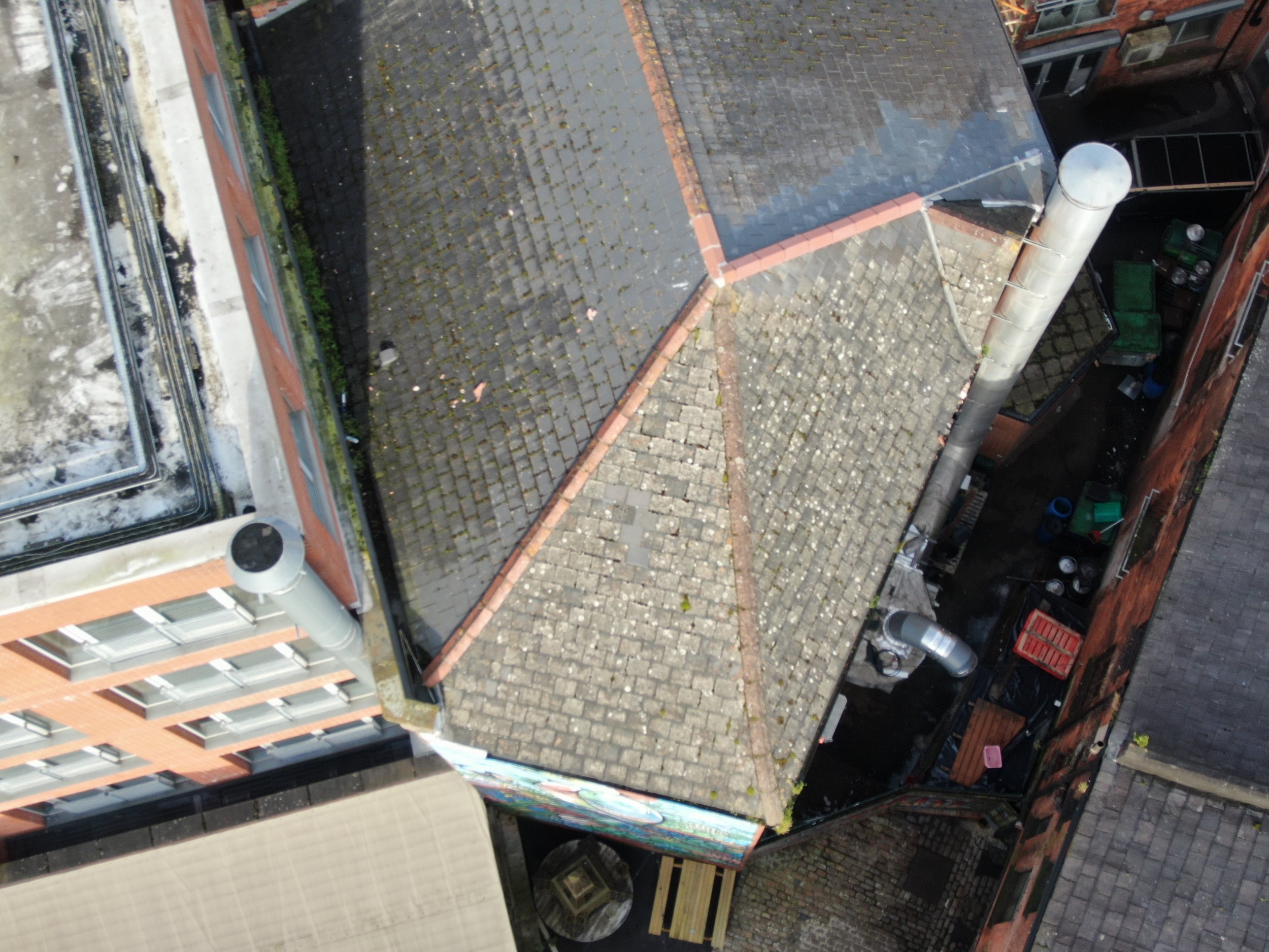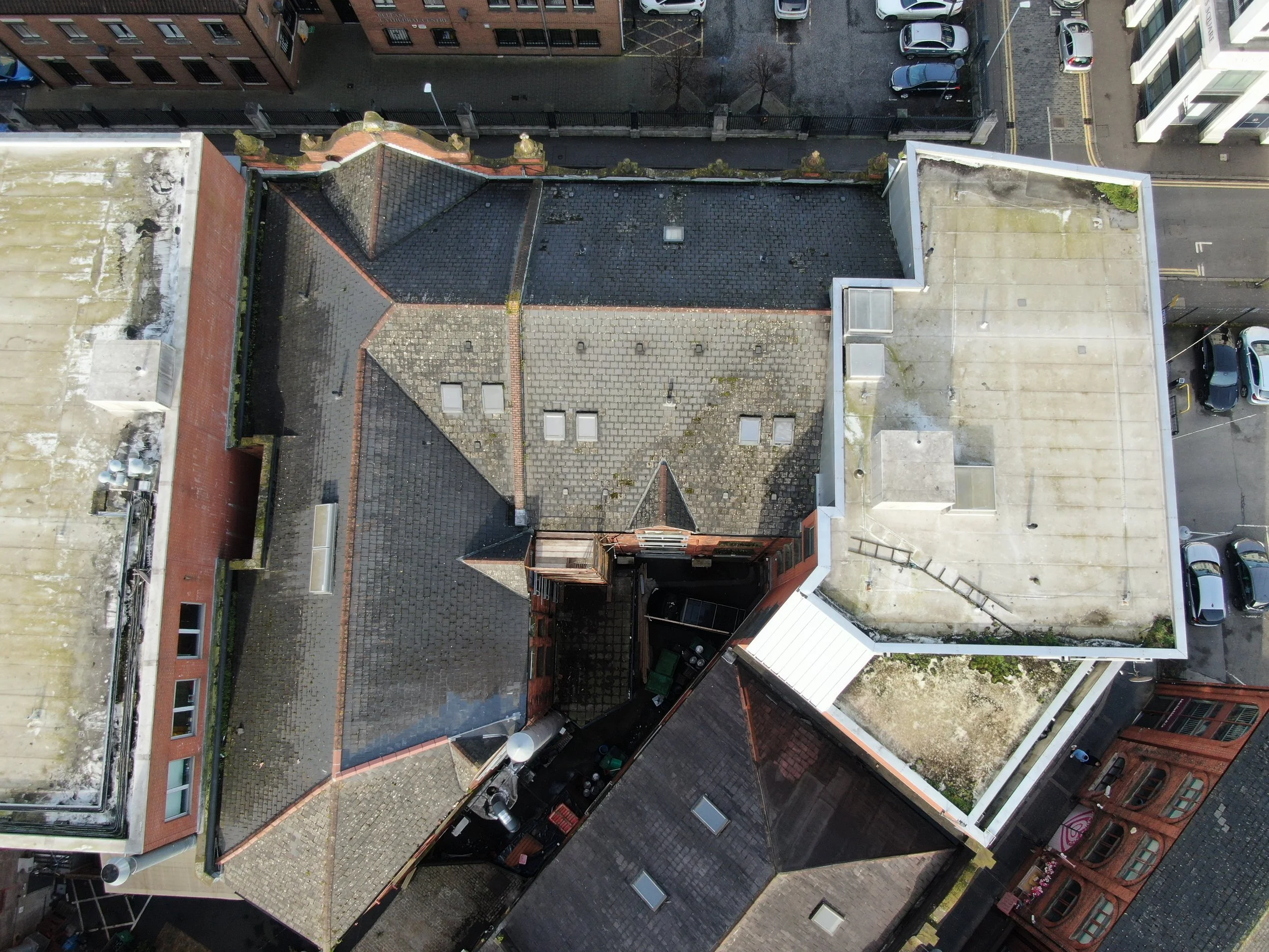 We were instructed to inspect and report upon the roofs to this mixed-use city centre building. As qualified and insured commercial drone operators, we utilized our drones to assist with the overall inspection.