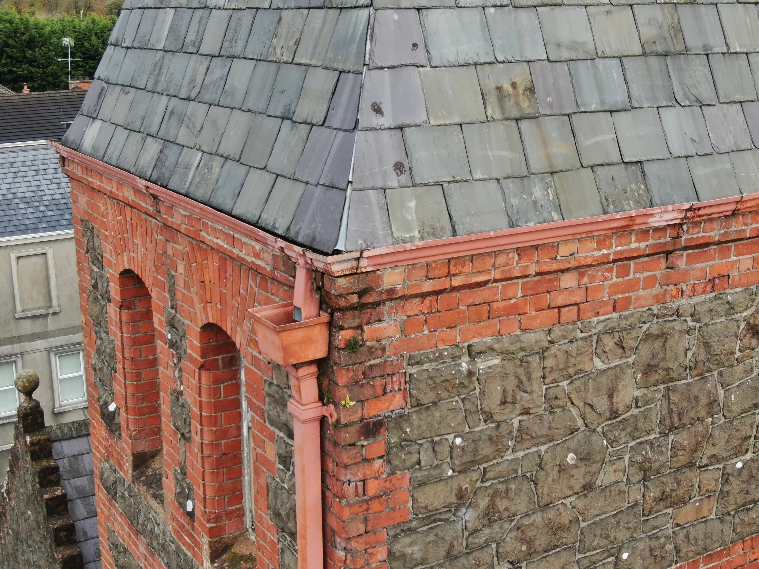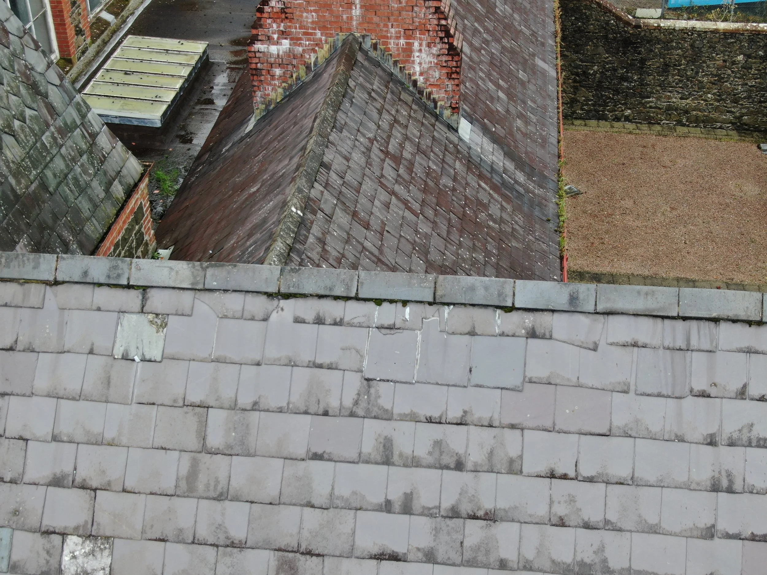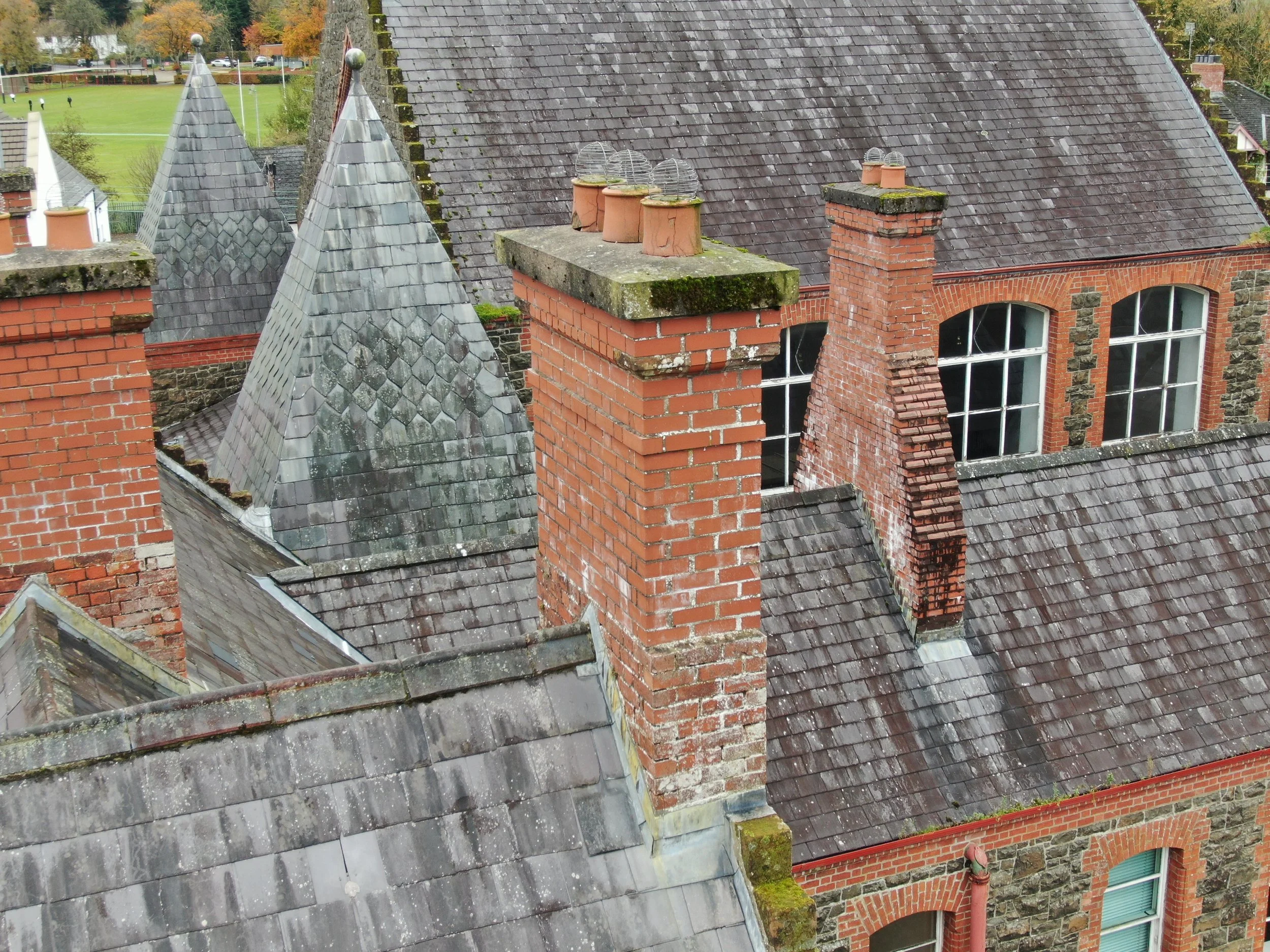The large and complex building boasts several roof configurations, valleys, spires and chimney stacks. The location and complex design meant the roofs were not readily accessible for inspection, but our drone was able to pinpoint defects within minutes.