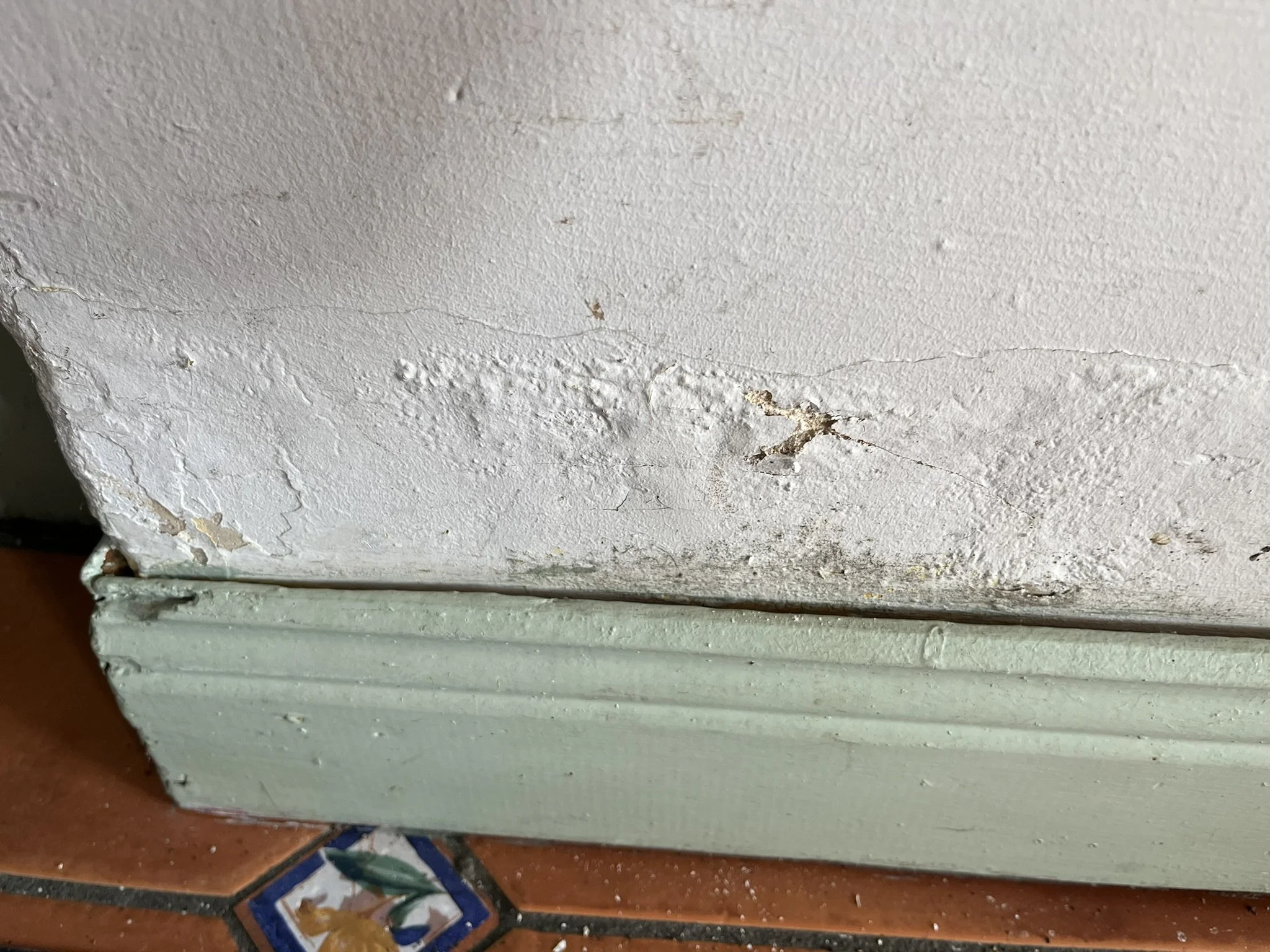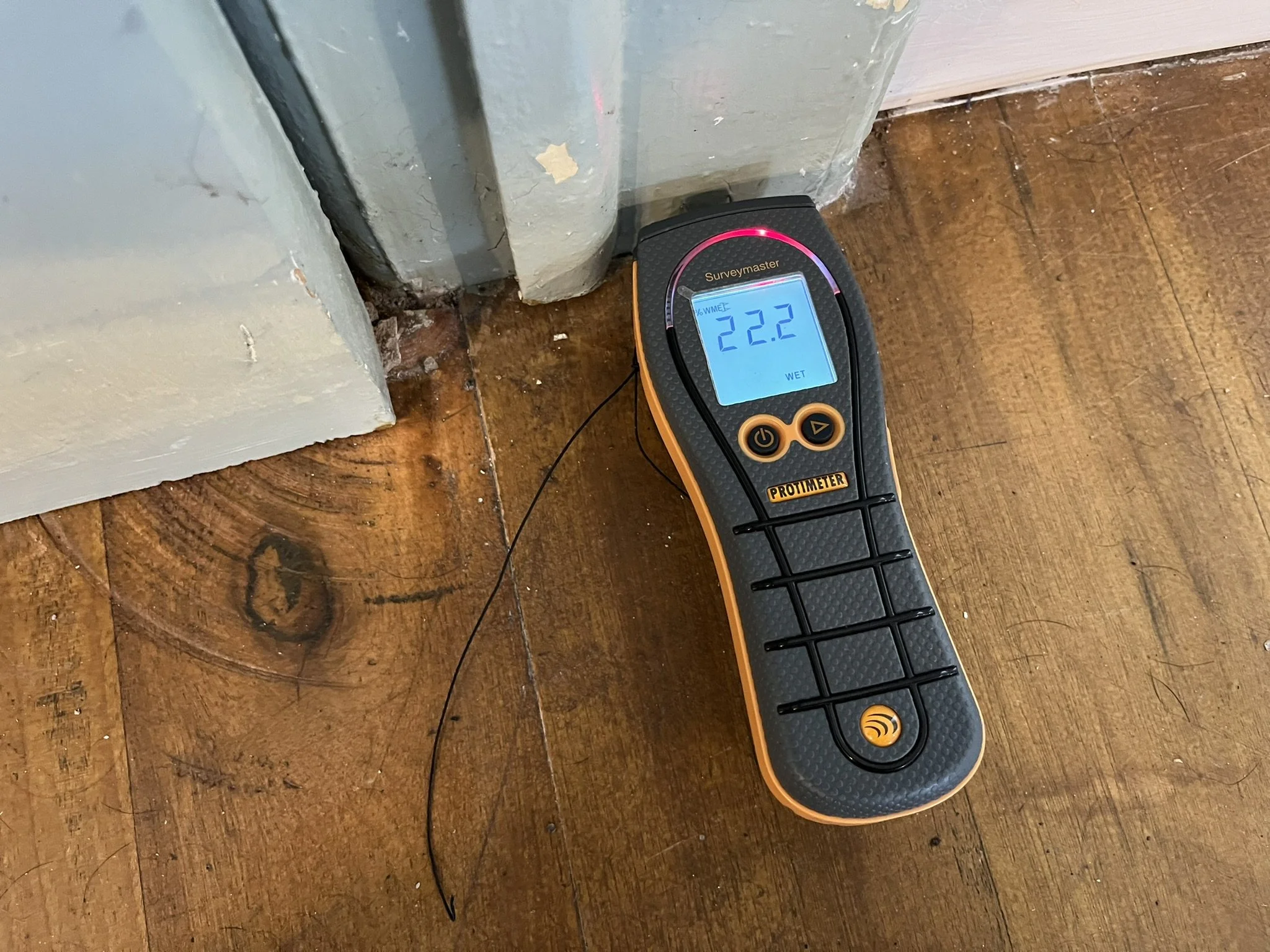 • High moisture meter readings to ground floor walls at low level and floor throughout